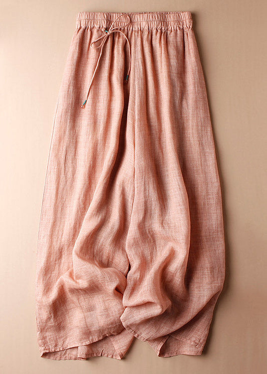 Pantalon lanterne en lin uni à taille élastique gris clair grande taille été LY4415