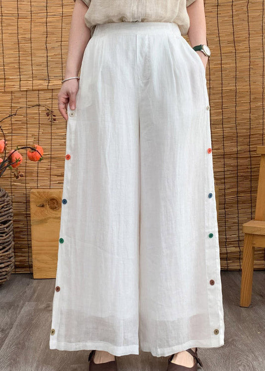 Pantalon large en lin blanc élégant à taille élastique pour l'été LY4457