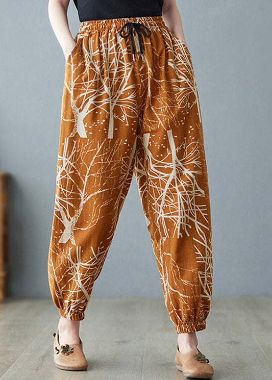 Pantalon sarouel ample en coton à taille élastique brodé orange pour l'été LY4461