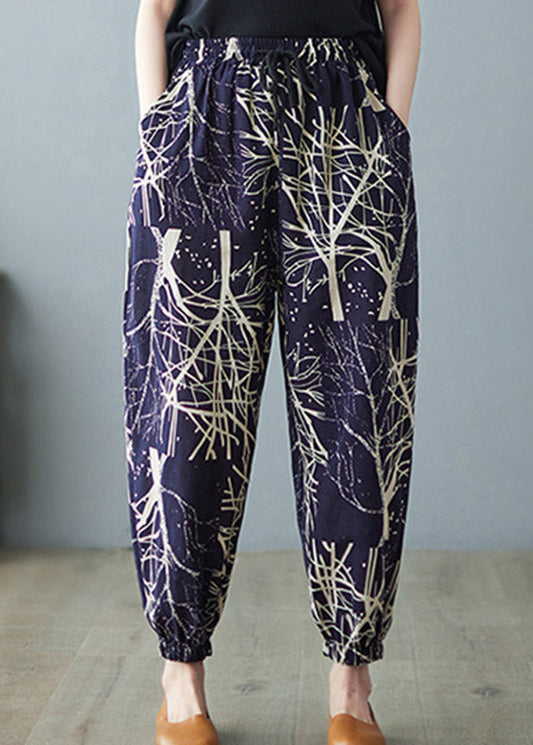 Pantalon sarouel imprimé taille élastique bleu marine pour femme LY4483