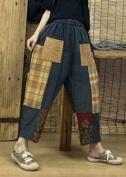 Pantalon à carreaux patchwork imprimé vintage Old Beam Été LY4579