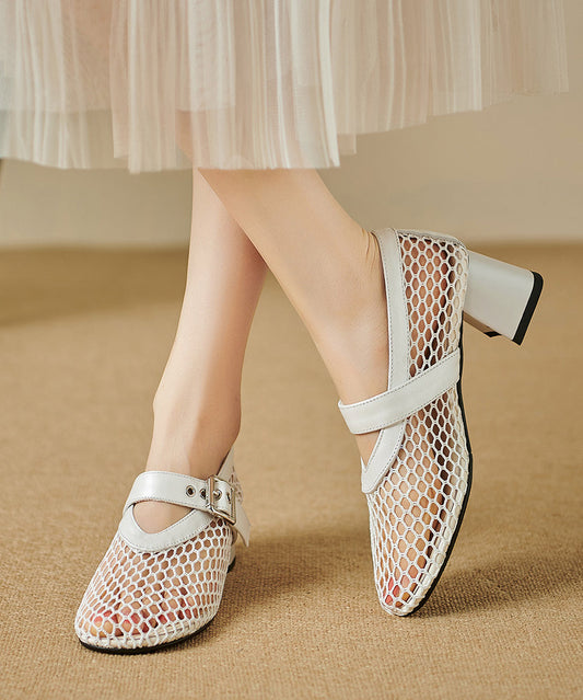 Sandales à talon épais ajourées avec boucle noire AP1062