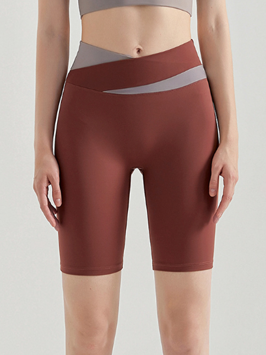 Pantalon de fitness taille haute assorti aux couleurs pour femmes, pantalon de sport respirant à séchage rapide et à haute élasticité, pantalon à cinq points, pantalon de yoga à bascule, short QN117