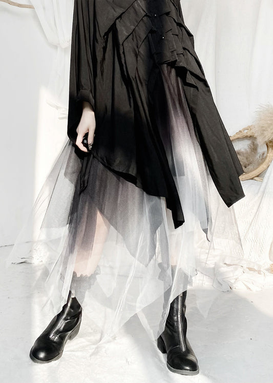 Jupe trapèze asymétrique en tulle à dégradé de couleurs noir et blanc unique LY9289