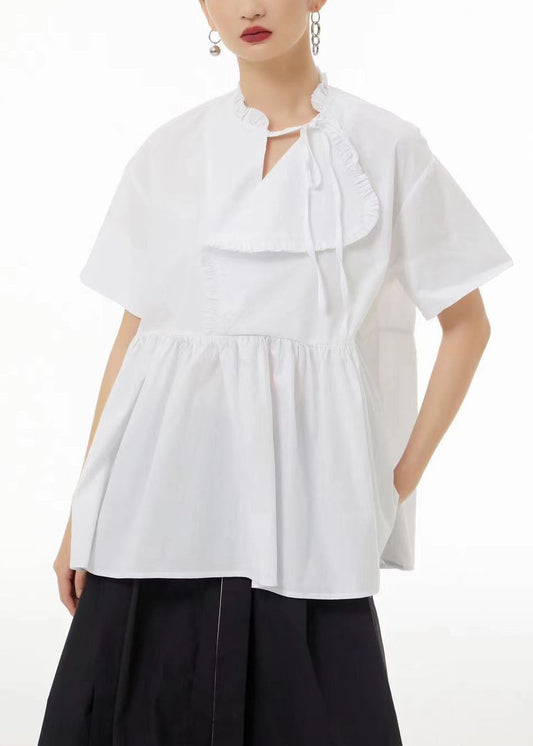 Chemisier en coton froissé blanc unique à coupe basse et haute pour l'été LC0116