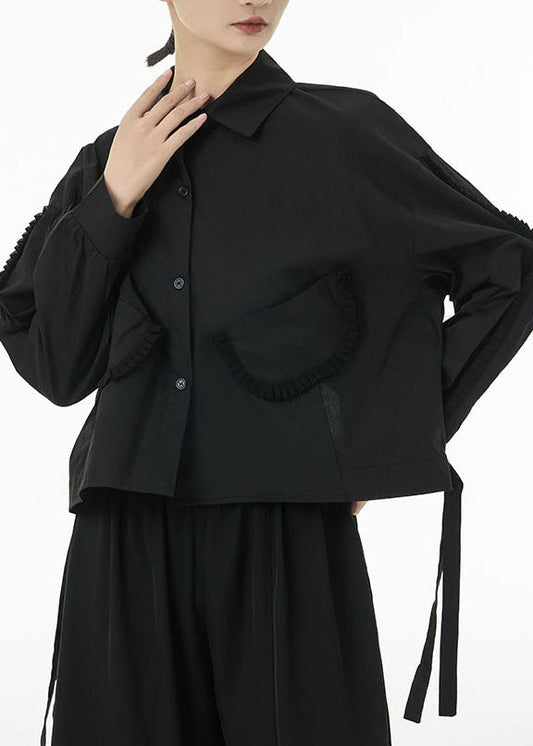 Chemise en coton noir au design original avec poches et col Peter Pan, printemps LC0102