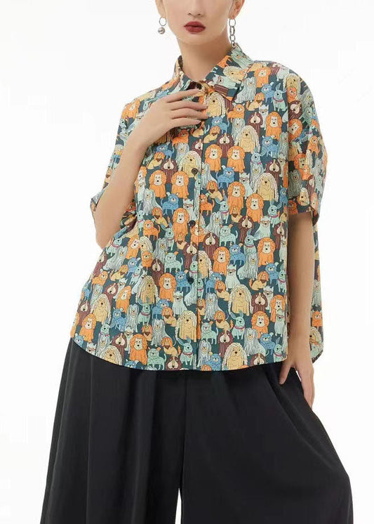 Chemisier en coton kaki à imprimé animal et col Peter Pan pour femme, été LC0159