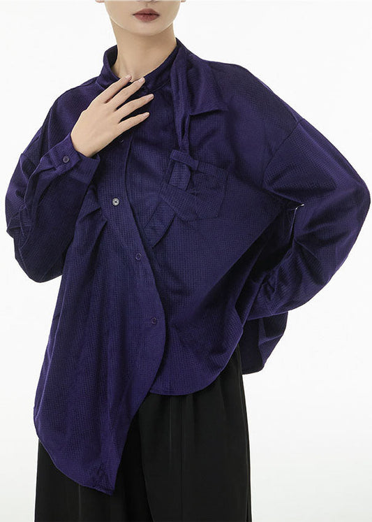 Haut chemise en velours de soie à motif asymétrique violet pour femme Printemps LC0131