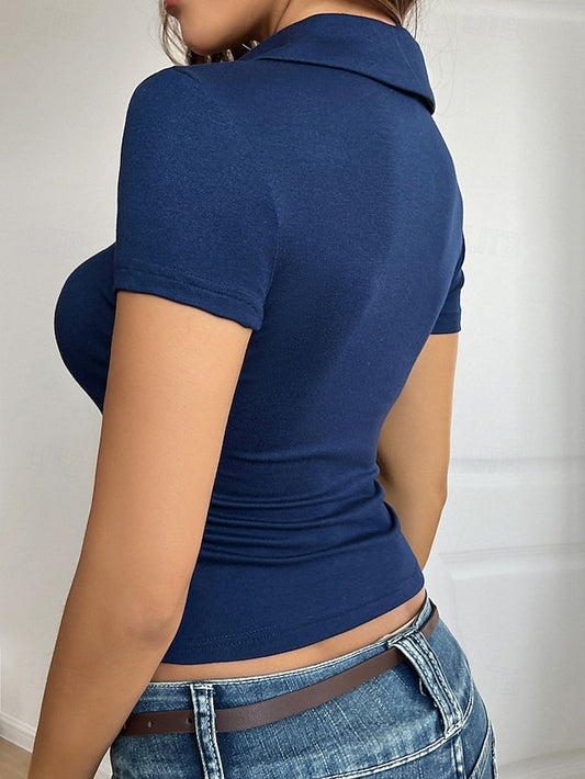 Women's T Shirt Waffle Knit Tops Y2K Slim fit top Tunic