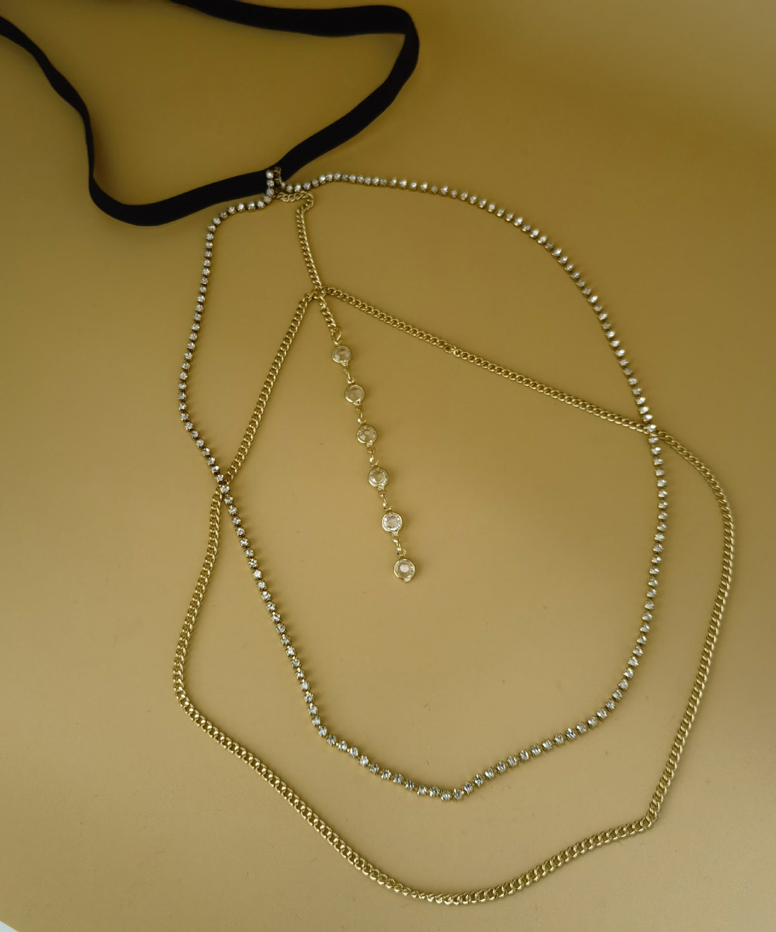 Boho Gold Alloy Zircon Elastic Chain Body Chain