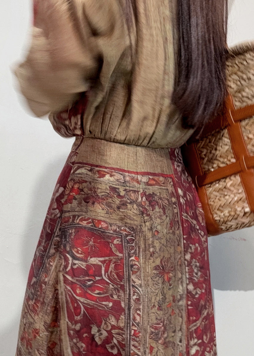 Boho Coffee Holiday Dress Cinched Print Linen Summer