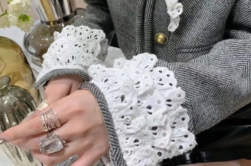 Eyelet Lace Cuff Button-Up Jacket
