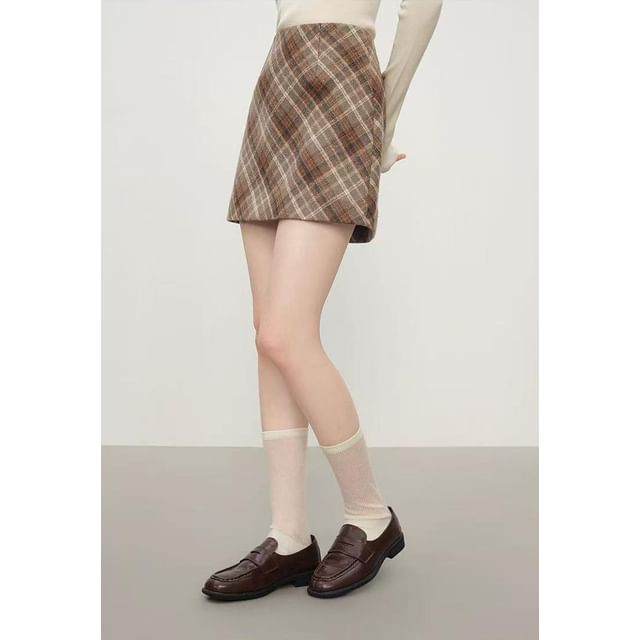 High Waist Plaid Mini A-Line Skirt
