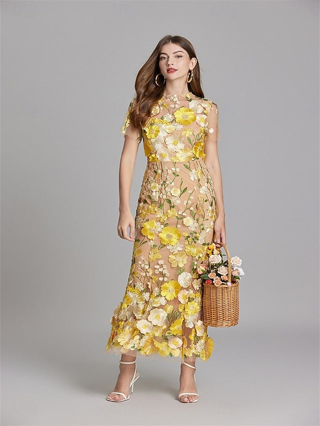 Occasion: Wedding Guest, Party Wear, Birthday, Wedding, Evening Party, Masquerade, Prom, Style: Floral, Party, Elegant, Silhouette: Mermaid Trumpet, Hemline / Train: Ankle Length, Neckline: Crew Neck, Fabric: Polyester, Closure: Zipper UP, Sleeve Length: Short Sleeve, Embellishment: Embroidery,