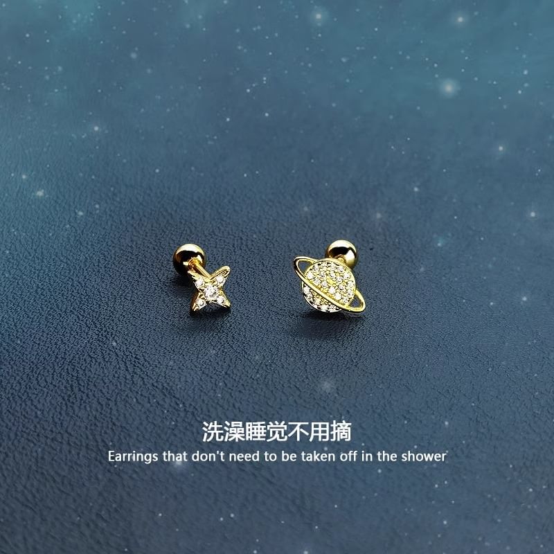 Rhinestone Earring Silver Star Sterling Barbell Asymmetrical