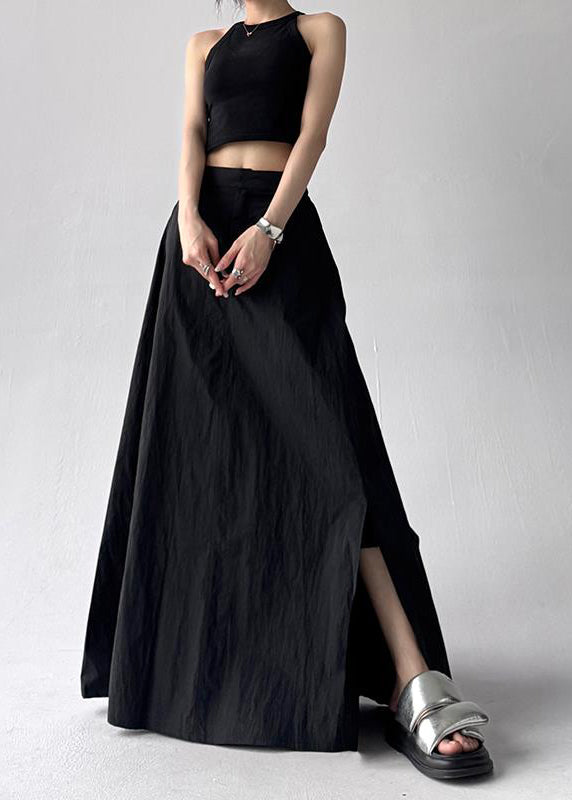 Jupe trapèze bohème grise à ourlet extra large et ouverture latérale pour l'été