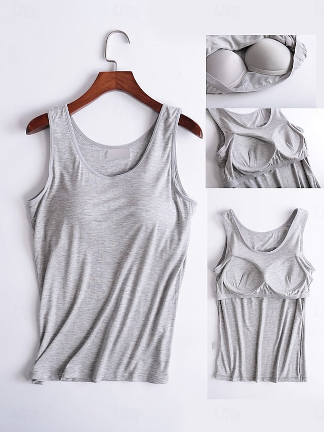 Tops Type: Camisole Tank Top, Fabric: Modal, Gender: Women's, Occasion: Daily, Style: Daily, Casual, Basic, Category: Top, Fit Type: Regular Fit, Neckline: Strap, Details: Chest pads, Sleeve Length: Sleeveless, Elasticity: Stretchy, Look After Me: Washable, Hand wash, Machine wash, Top Length: Regular Tops, Pattern: Solid Color, Season: Spring, Summer,