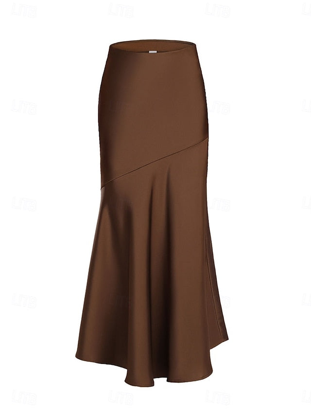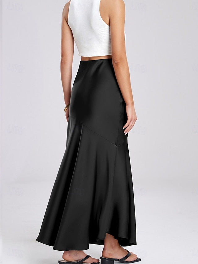 Women's Satin Skirts Elegant Vintage Fashion Casual Maxi