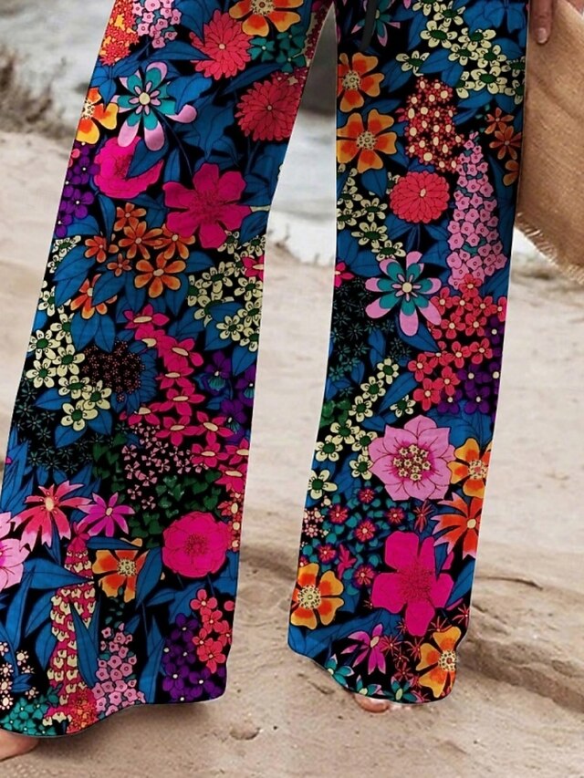 Gender: Women's, Pants Type: Wide Leg, Pants Trousers, Style: Vacation, Casual, Occasion: Daily Wear, Vacation, Street, Fabric: Polyester, Design: High Cut, Elastic Waist, Printing, Waistline: High Waist, Elasticity: Micro-elastic, Pants Length: Long, Function: Soft, Breathability, Fit Type: Regular Fit, Pattern: Floral, Season: Fall, Spring,