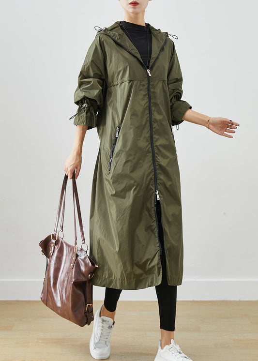 Army Green Spandex Trench Cinched Drawstring Fall ML2418