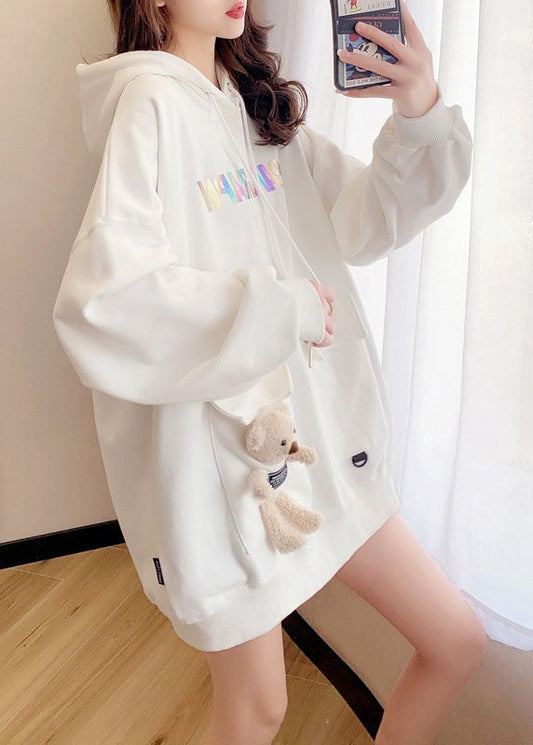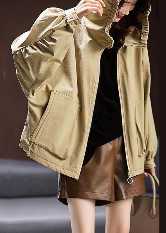 Handmade Beige Zippered Patchwork Drawstring Winter Hooded Coats Fall ML2212