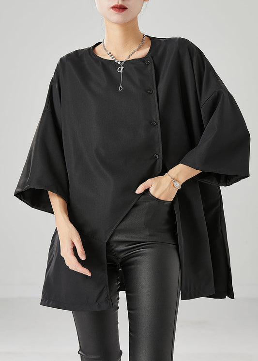 Loose Black Asymmetrical Side Open Cotton Blouses Bracelet Sleeve ML2473
