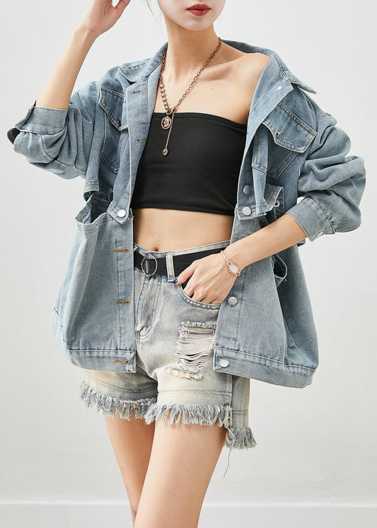 Modern Blue Oversized Two Wearing Methods Denim Coat Fall ML1993