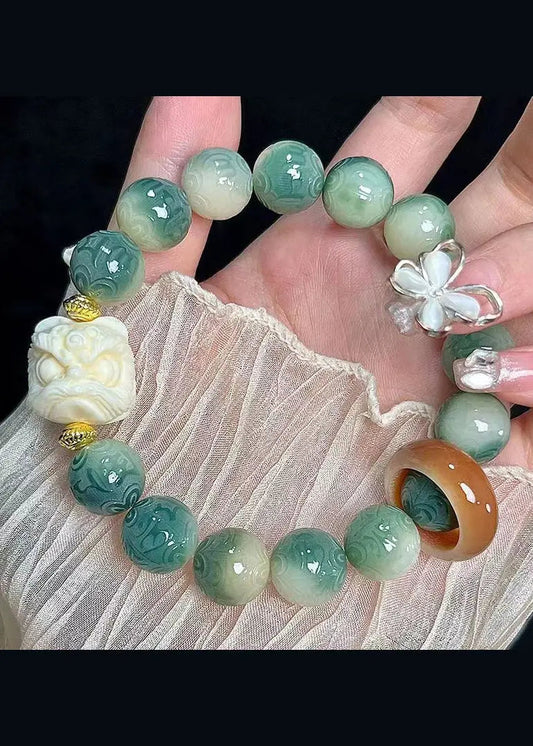 Chic Green Six Word Proverbs for Peace Bodhi Bracelet ML1390