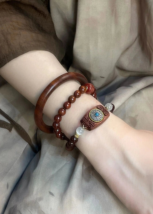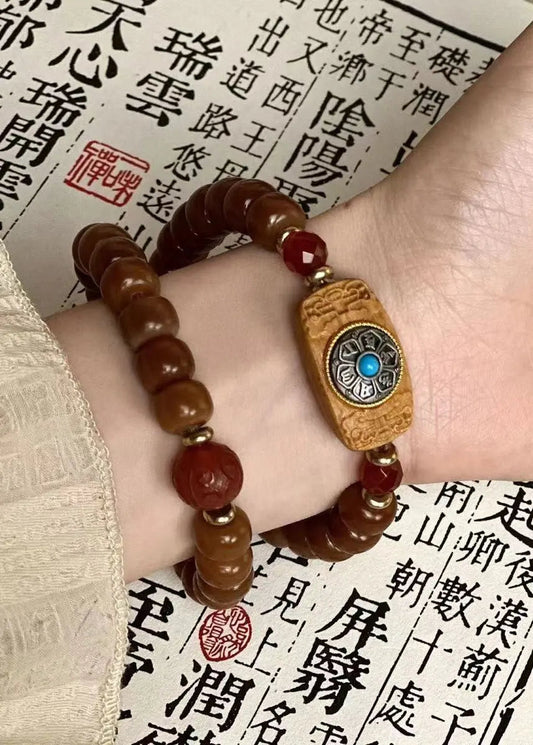 Vintage Sandalwood Double Ring Good Luck Bracelet ML1341