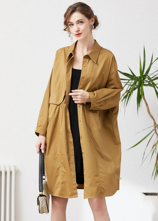 Khaki Cotton Loose Trench Peter Pan Collar Drawstring Spring LY0330