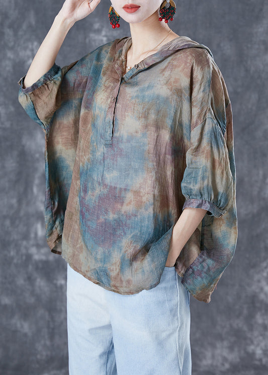Purple Tie Dye Linen Shirt Top Hooded Oversized Bracelet Sleeve TA1035