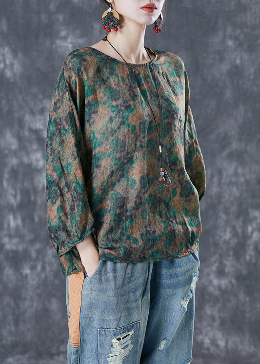 Handmade Green Oversized Tie Dye Linen Shirt Top Bracelet Sleeve TA1037