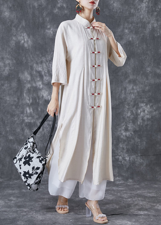 Vintage White Chinese Button Side Open Cotton Trench Bracelet Sleeve TA1023