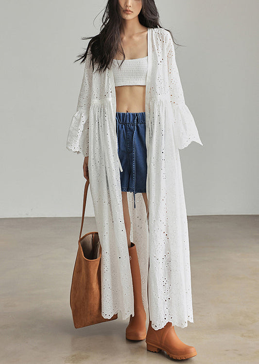 Elegant White Lace Up Hollow Out Cotton Dresses Flare Sleeve ZL056