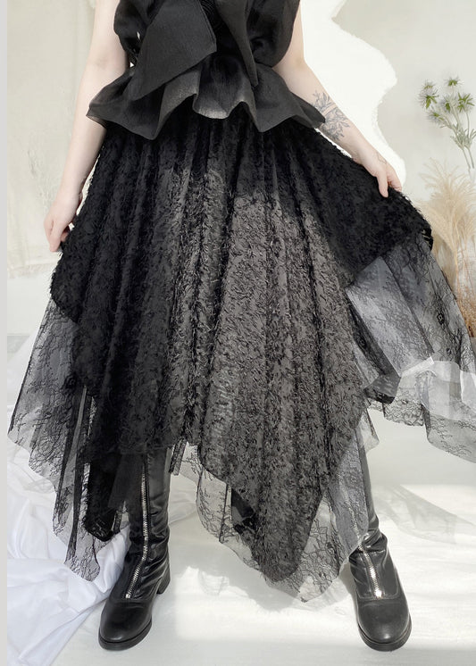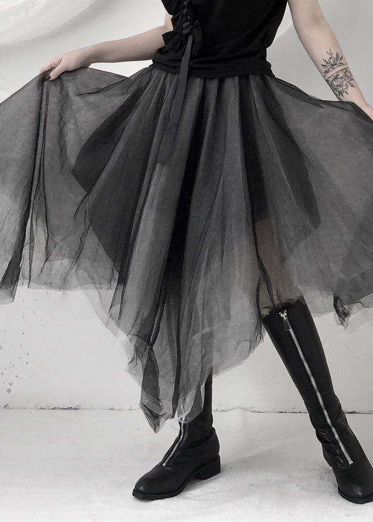 Boho Black Asymmetrical Layered Tulle Maxi Skirt LY9358