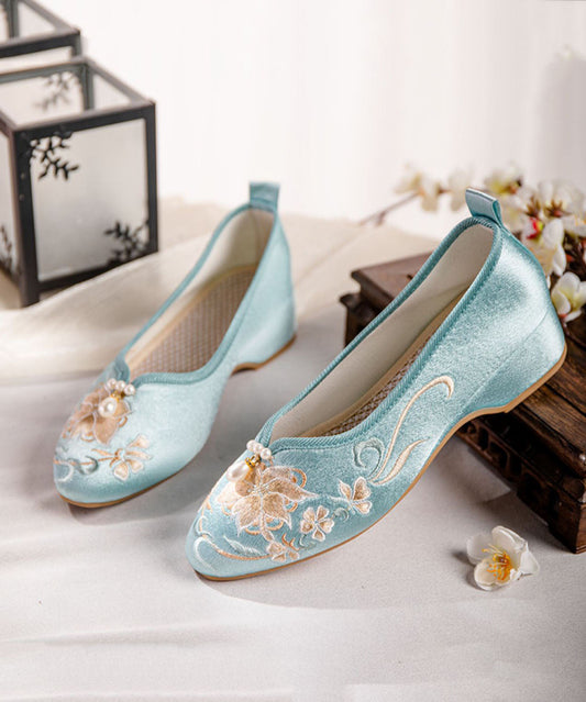Blue Wedge Heels Satin Boho Splicing Nail Bead Embroidery LY7709