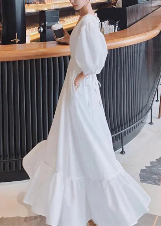 Boho Black Ruffled Lace Up Patchwork Cotton Long Dresses Summer LY9058