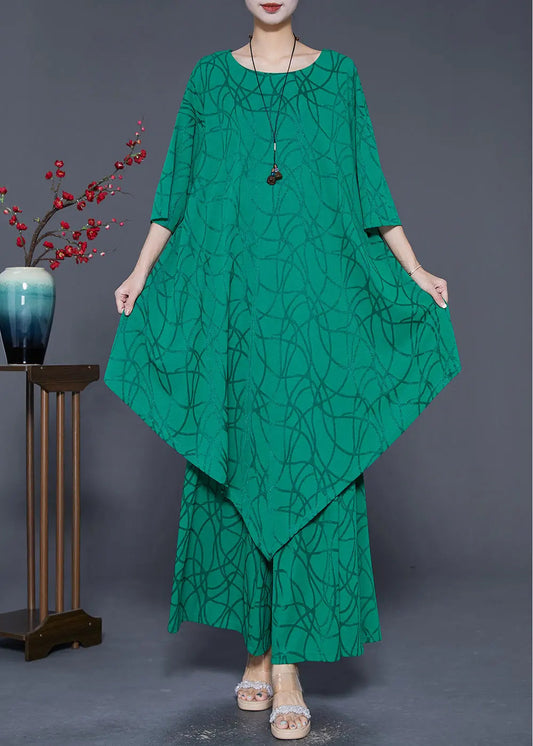Boho Green Asymmetrical Design Silk Two Pieces Set Summer LY8712