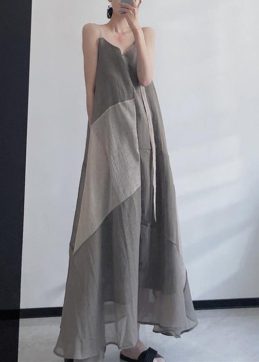 Boho Grey Cinched Print Chiffon Long Dresses Summer LY7663