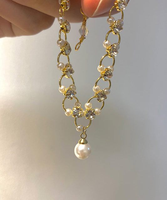 Stylish Gold Copper Alloy Zircon Pearl Charm Bracelet TX033