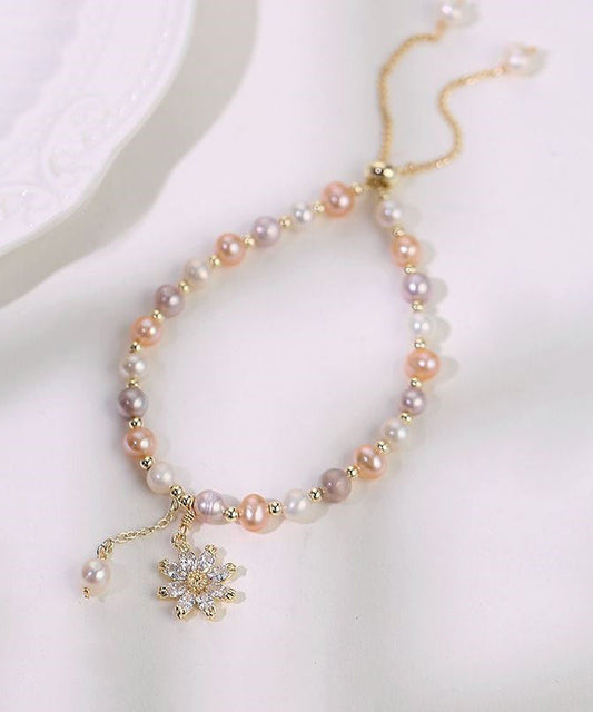 Art Multi Sterling Silver Overgild Pearl Tassel Charm Bracelet WF004