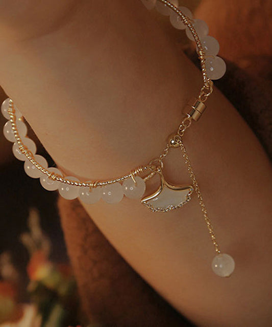 Classy Milky White Stainless Steel Pearl Beads Chain Bracelet ET017