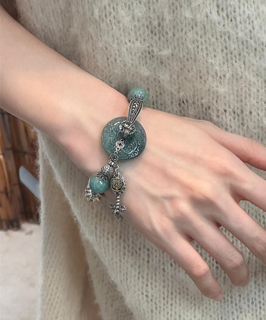 Bracelet Sterling Silk Beads Vintage Charm Ceramics Silver Jade