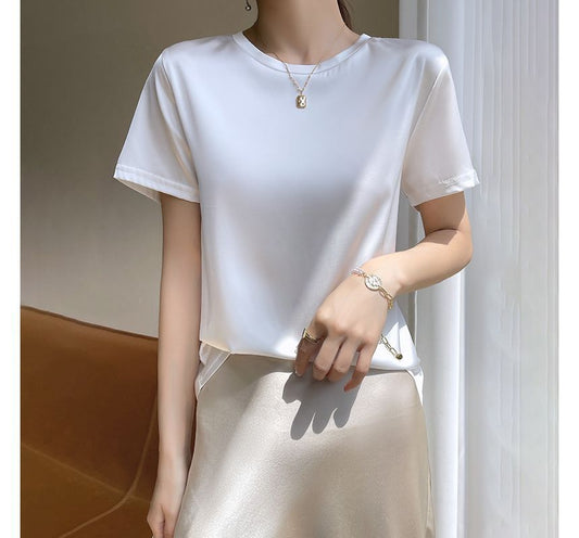 Short-Sleeve Crew Neck Plain Satin T-Shirt