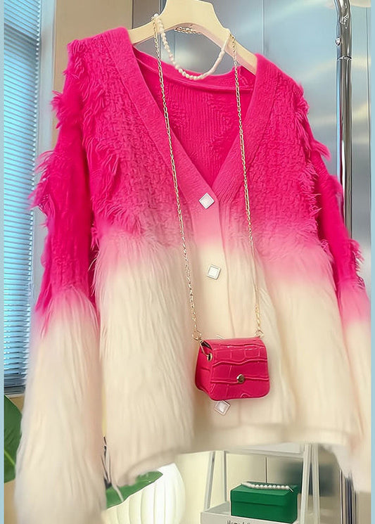 Women Gradient Color V Neck Button Cotton Knit Coat Long Sleeve AS1037