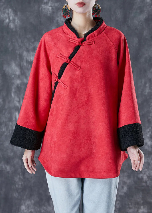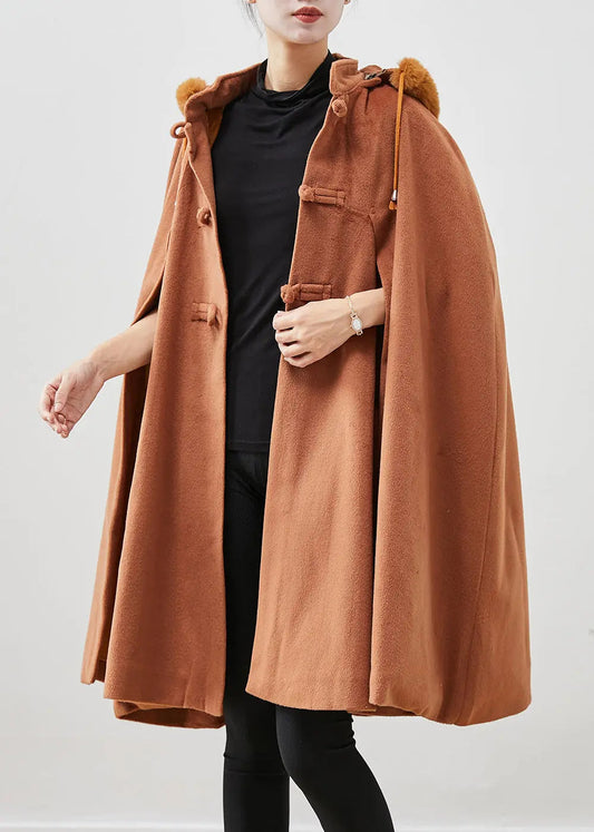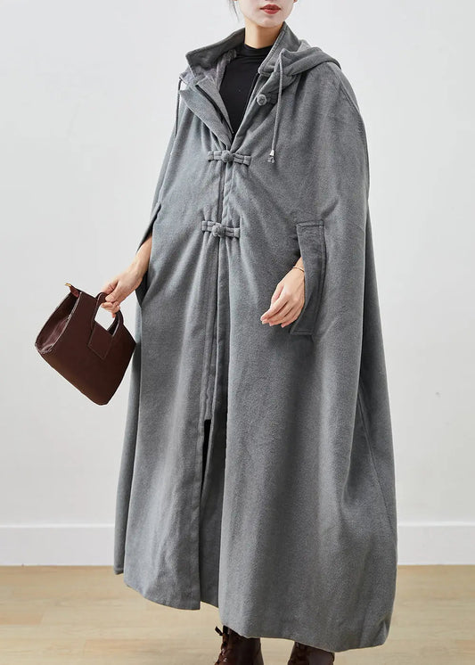 Women Hooded Chinese Button Fleece Coats Cloak Sleeves