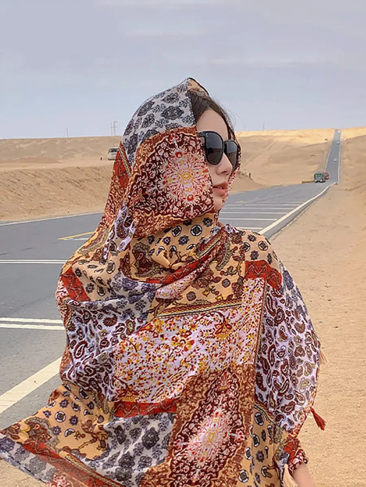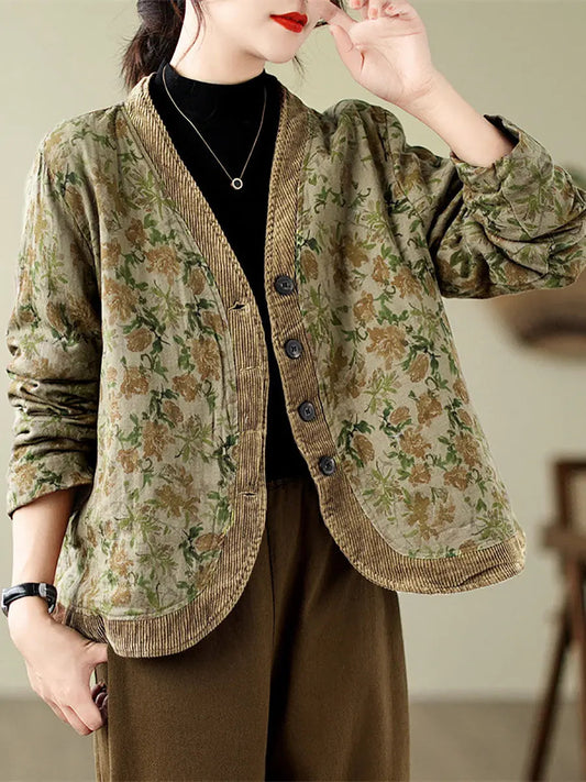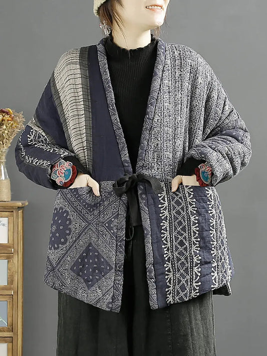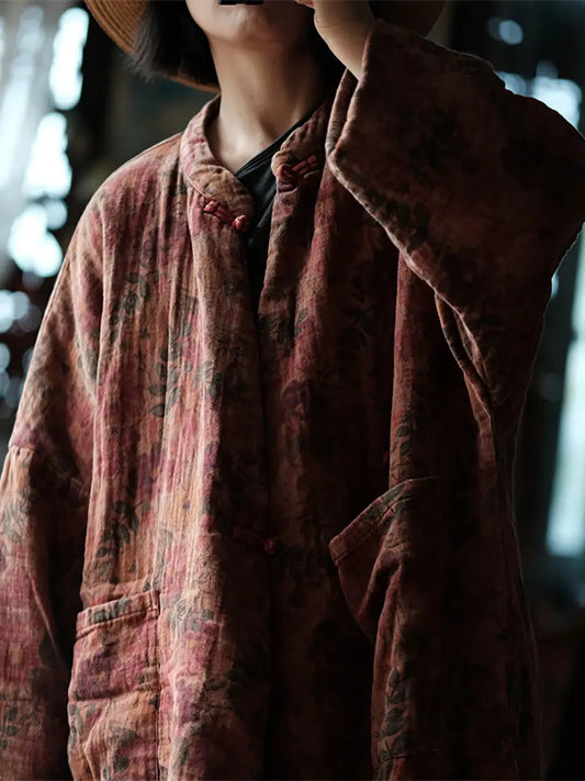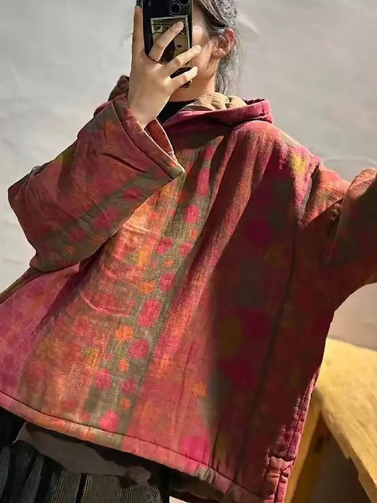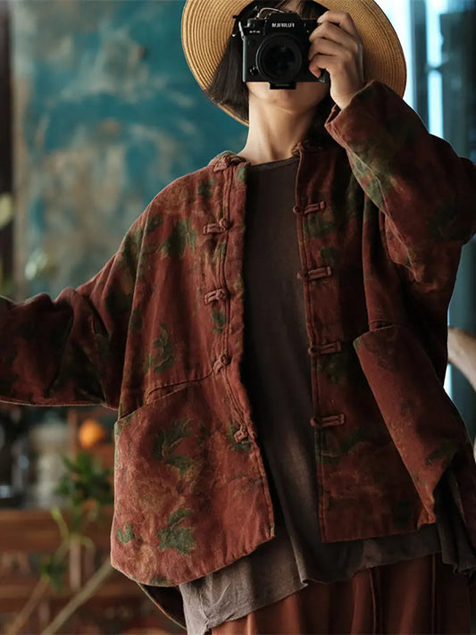 Women Leaf Gradual Print Denim Hooded Long Coat
