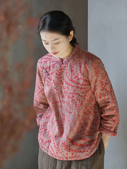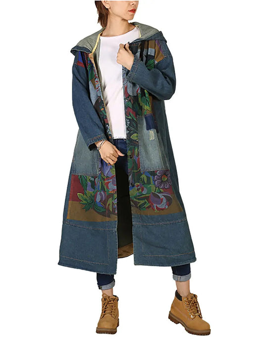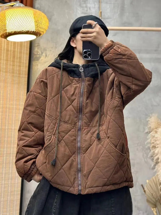 Women Spliced Cotton Fleece-Lined Hooded Coat
