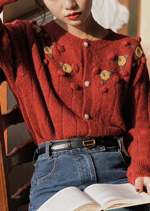 Bohemian Beige Embroidered Button Patchwork Knit Coats Fall TU047