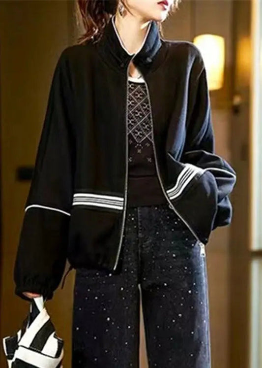 Stand Collar Zippered Drawstring Jackets